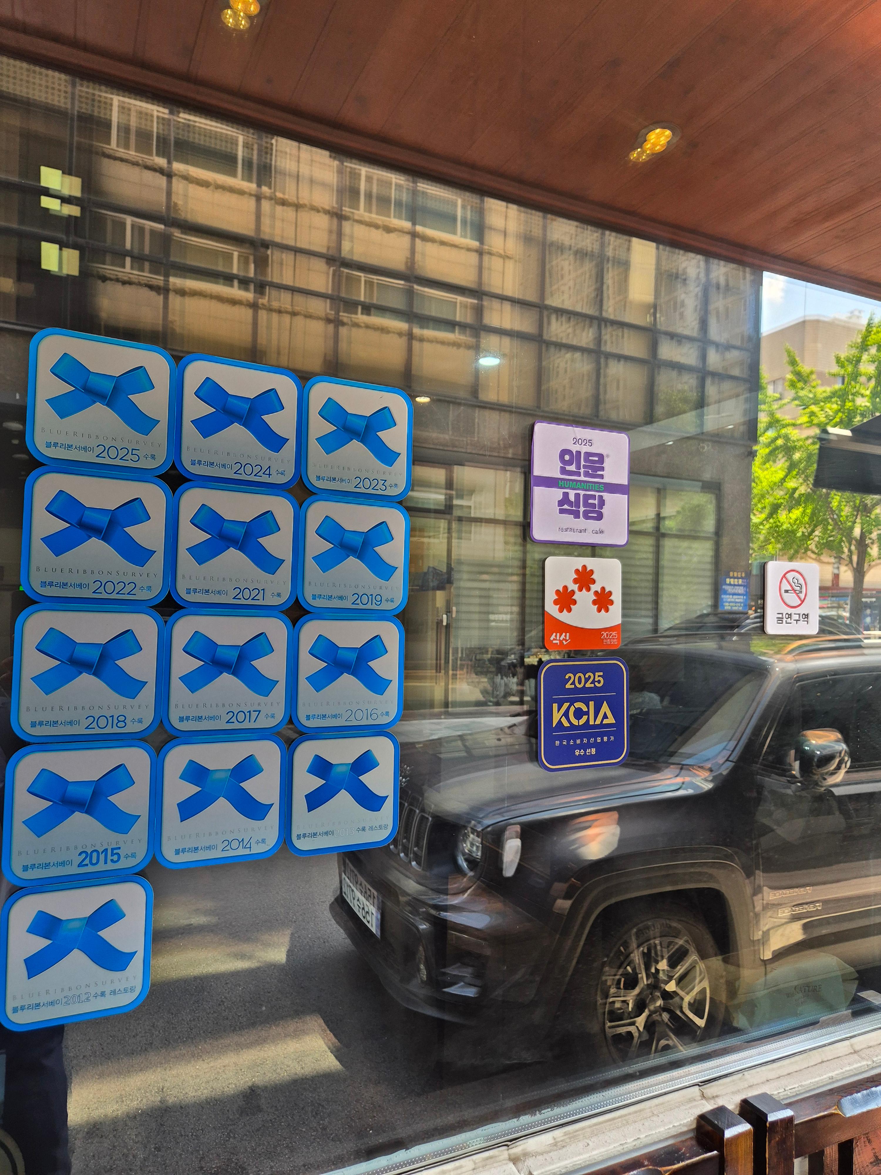 블루리본 서베이:한국의 대표적인 맛집 평가/인증서로, 매년 선정된 좋은 식당에 푸른 리본 스티커를 수여합니다.
